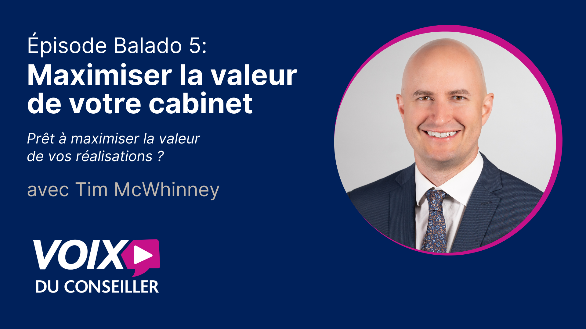Alors, entrons dans le vif du sujet. Voici « Maximiser la valeur de votre cabinet » avec Tim McWhinney.